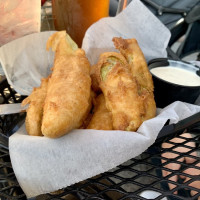 “ Sidetrack is pet-friendly, which made us happy as we don't have many pet-friendly places in our hometown. We brought our two dogs and were seated outside. They even have a dog-specific menu! Rather than order individual entrees, we split a few appetizers - pretzel bites, fried clams, and Reuben egg rolls. All three were delicious - I especially loved the beer cheese dipping sauce for the pretzel bites. We got a "pup plate" and the dogs split a rice, gravy, and burger lunch. They were really excited and happy to be there. There were yellow jackets swarming all over the patio - it really ruined our experience. I was stung on the hand. The staff did their absolute best to try and fix it - they poured some nectar far away from the tables, and they brought me an ice pack after I was stung, but if you're going to have an outdoor patio full of flowers, you should do more to make sure there aren't hives nearby. Or find a way to seat people inside or away from the wasps, even if we have dogs with us. I would return to Sidetrack, but probably not in late summer when this insect problem is at its peak. ”